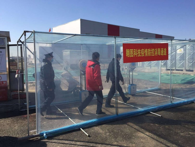 2、翱翔科技有限公司防疫嚴密,利用公司產(chǎn)品設立防疫消毒通道,保安員負責測量人員體溫、登記,監督人員在防疫通道消毒后進(jìn)入廠(chǎng)區。