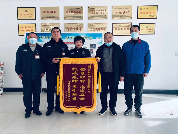 2020年,我公司駐奇瑞汽車(chē)河南有限公司保安員,他們辛勤的工作,努力的付出,得到了奇瑞公司領(lǐng)導的充分肯定,特向公司送錦旗一面,實(shí)現了2021年公司開(kāi)門(mén)紅。希望全體員工以他們?yōu)榘駱?,不斷提高文明服?wù)水平,為公司發(fā)展做出更大貢獻!
